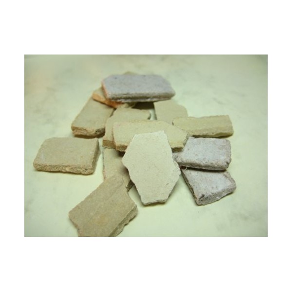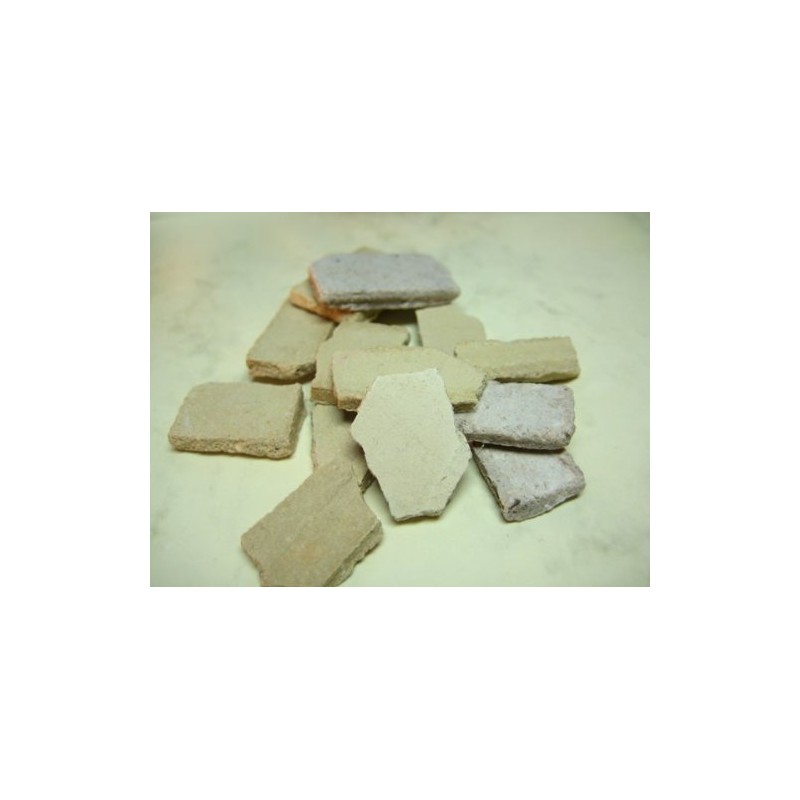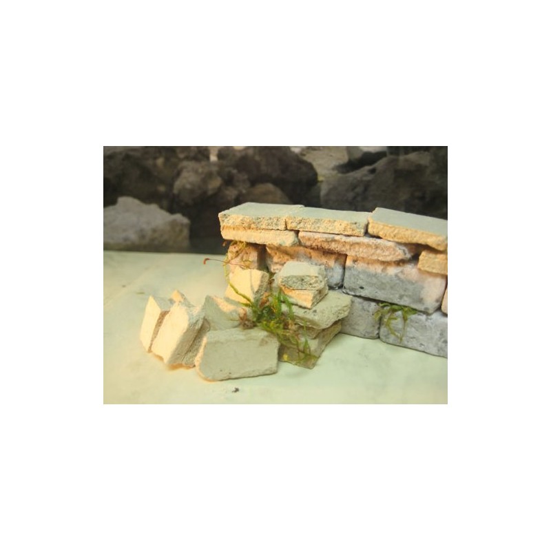 The stones are made from a special plaster/sand mixture and are also completely dyed and look like sandstone (artificial sandstone). The stones are easy to break and are sometimes coloured differently, which gives a very beautiful effect.