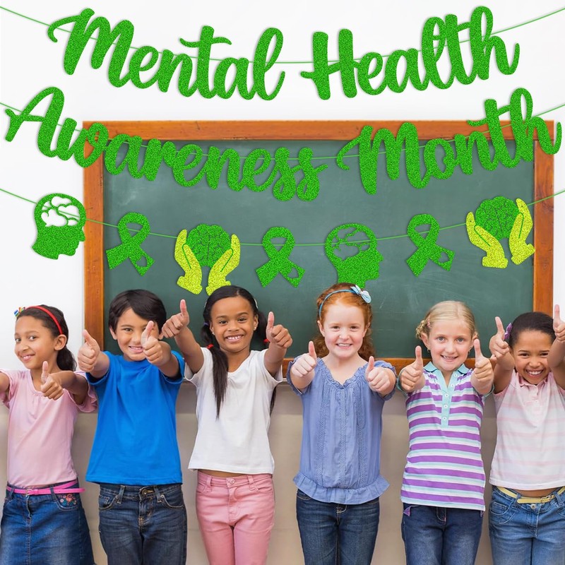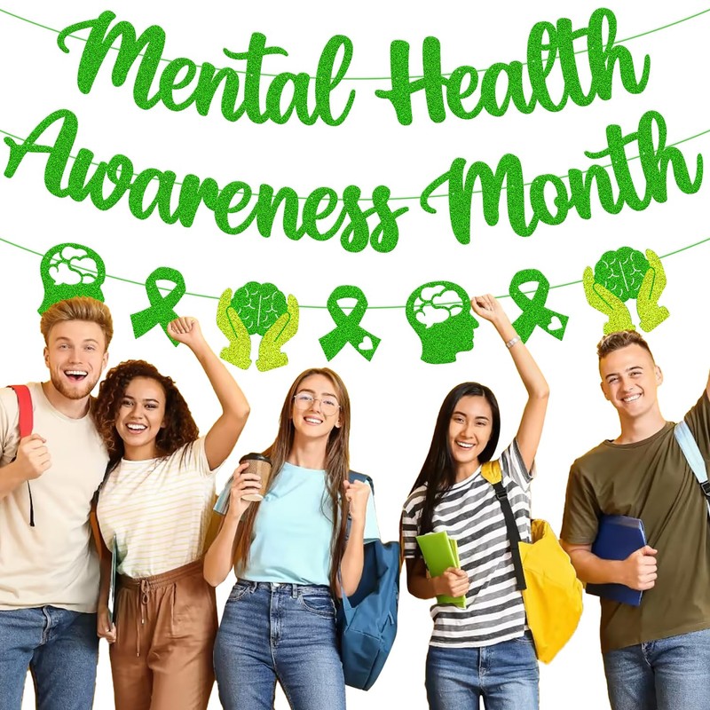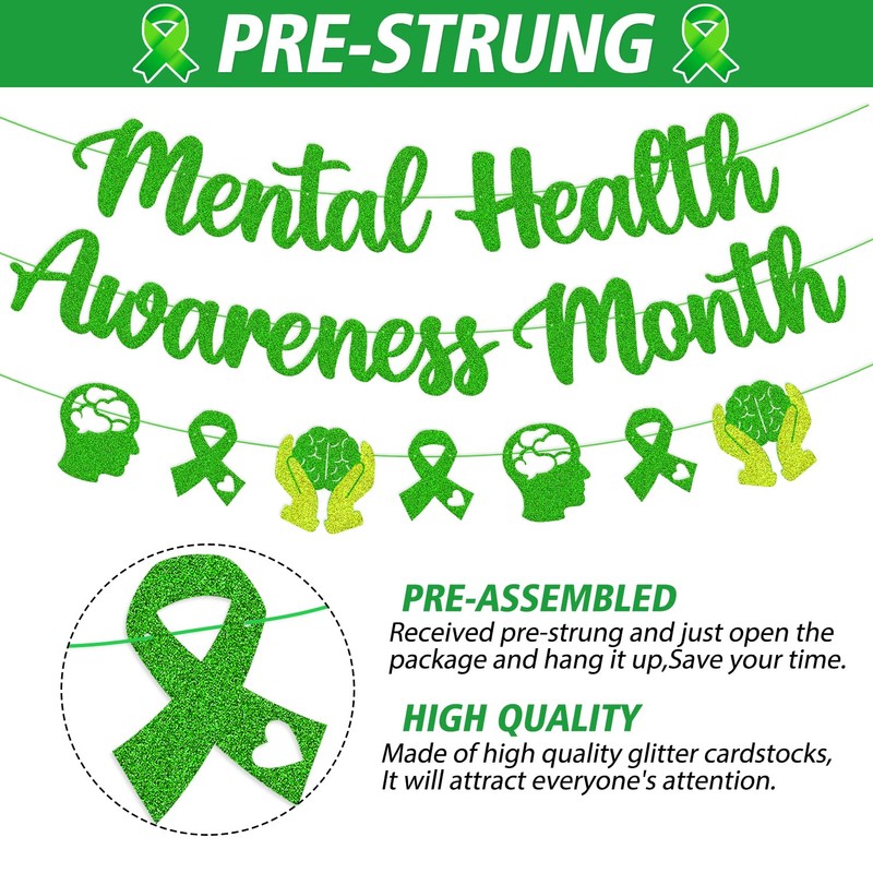 - Amazing Mental Health Awareness Month Party Decoration - Add some sparkle to your mental health awareness month party with our glitter green mental health banner. Perfect for in may mental health awareness month theme, faith hope love strength inspiring theme party.