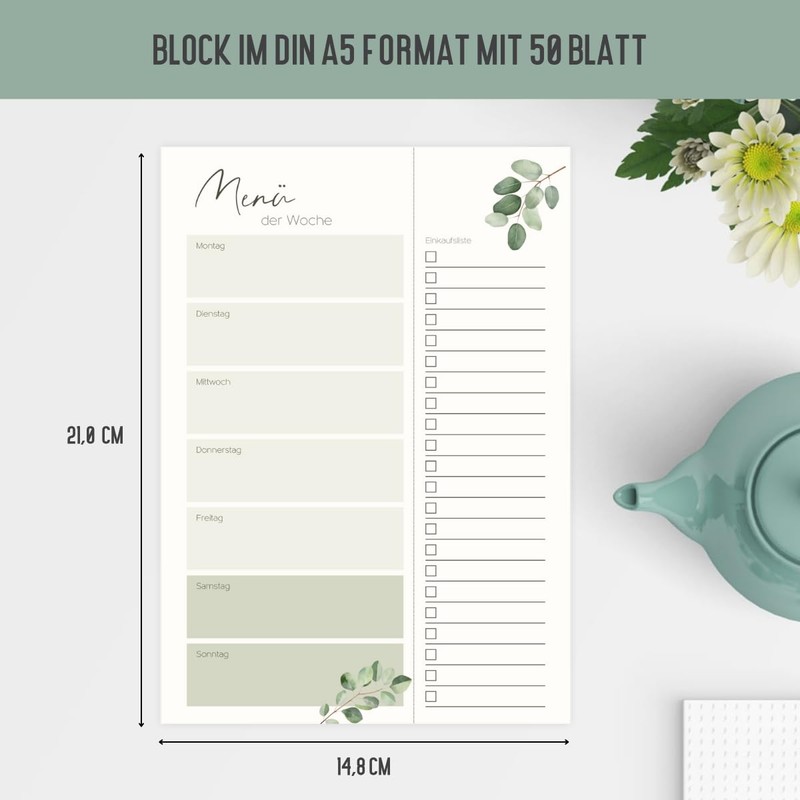 - Efficient food planning: Our DIN A5 pad is the ideal solution for effective food planning. With 50 sheets of 90 g/m² paper, it offers enough space for your weekly menu planning.