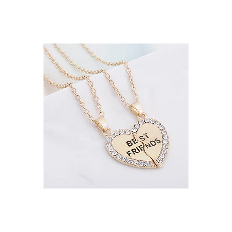 MenYiYDS 2 Pcs BFF Necklaces Friendship Necklace Best Friends Girls Necklace Alloy and Rhinestone Decorated for Girls Birthday Gifts Pendant Chain Gifts (Golden)
