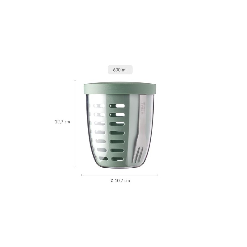 - Capacity: the Ellipse fruit and vegetable pot has a capacity of 600 ml. This makes the fruit box with fork perfect for transporting pieces of fruit, vegetables, salad or yoghurt