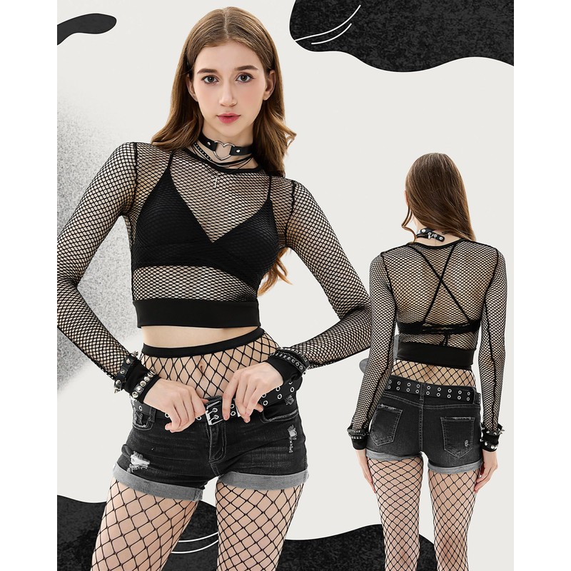 - You Will Receive: unleash your inner punk with this complete set, featuring 1 hollow fishnet blouse, 1 black pantyhose, 1 punk cross necklace, 1 love collar, 1 multi-layer punk bracelet, and 1 PU belt; Each piece is designed to make you the standout star of any event
