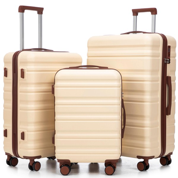 Merax 3-Piece ABS Hardshell Suitcase Set Lightweight, Tough & Scratch-Resistant, Ivory Horizontal Stripe, 20/24/28 Inch