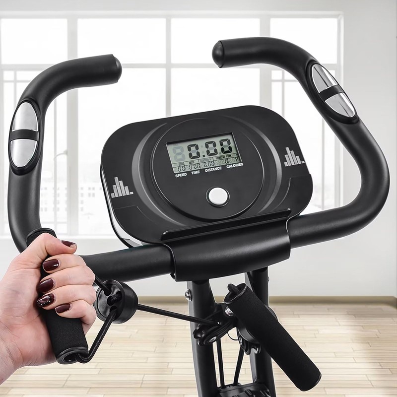 Merax Folding Exercise Bike - 3 in 1 Upright Indoor Cycling Bike and Recumbent Exercise Bike, Foldable Stationary Bike with Large Comfortable Seat Cushion and Arm Resistance Band, Pulse Sensor