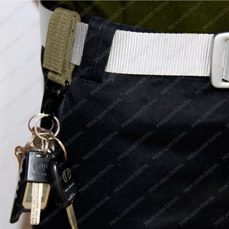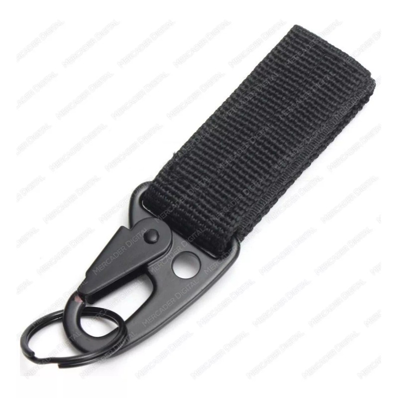 Mosquetón para cinturón con sujetador de poliéster y velcro, argolla para llaves y arnés de alta resistencia ideal para actividades tácticas, militares o policiales al igual que deportes extremos donde se requiera un arnés seguro.