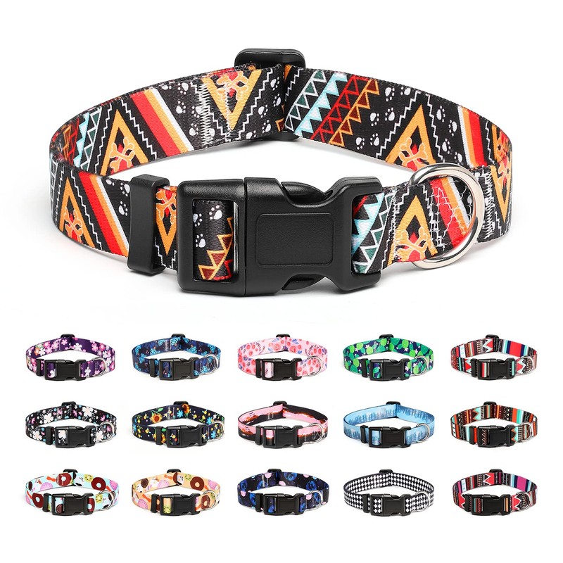 - 【Fashion Design】- Mercano dog collar is designed with unique patterns to make your dogs look stylish, adorable and elegant. Cute collars with sunset pink flower monstera sunflower tribal ethnic cookies forest rhomb patterns for your small medium large girl and bog dogs.