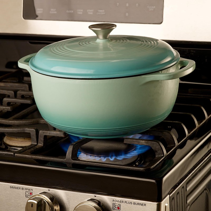 - QUALITY CONSTRUCTION: Our Cast Iron Dutch Oven, covered with chip-resistant porcelain-enamel, delivers superior heat distribution and retention. Ideal for slow cooking, braising, roasting, and more