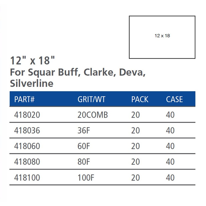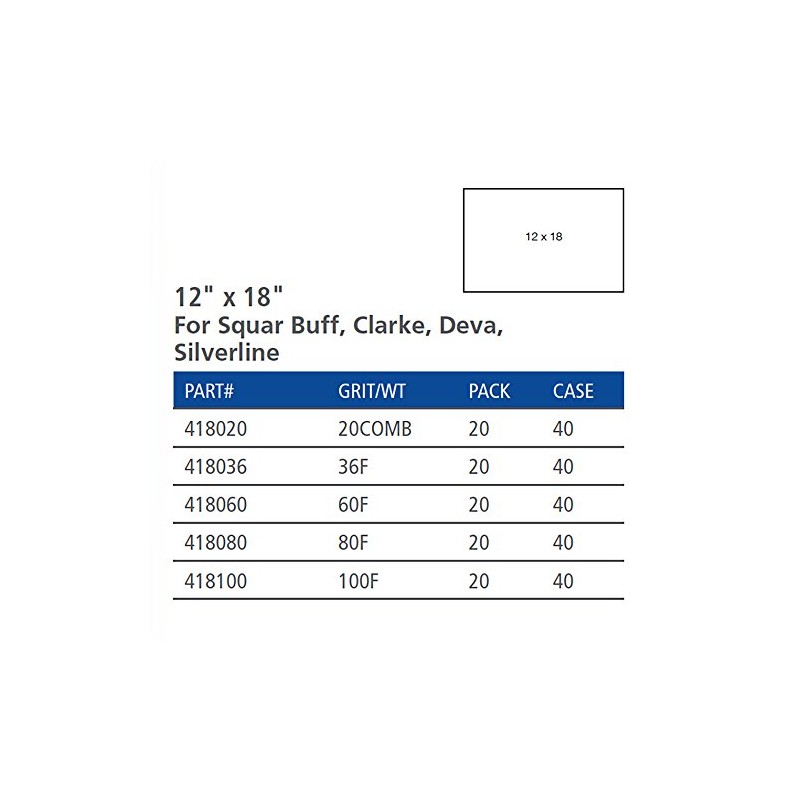 • 20 - Precut sheets for any 12" x 18" buffer - square buff, Clarke, deva, silver line. For hardwood or concrete