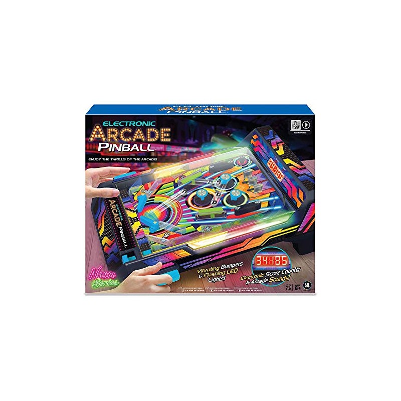 Enjoy the thrills of the arcade with the Electronic Arcade Pinball. Vibrating bumpers, Flashing LED lights, Electronic score counter all with Arcade sounds! Comes with 1 base unit , 6 steel balls and I sheet of stickers.