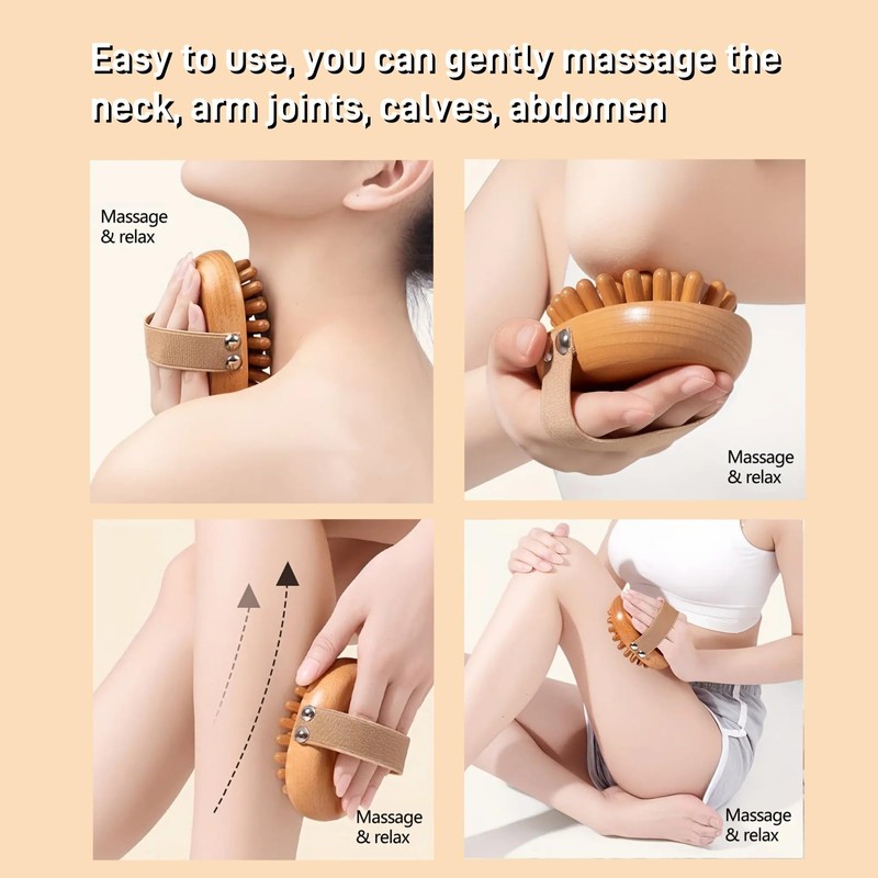 - DURABLE QUALITY MATERIAL: This body scrubber is made of sustainably sourced wood strong.All corners of our dry brushing body brush are smoothly processed to ensure safe use.This facial massager unique air cushion base with wooden contacts can perfectly fit the body curve to enhance the massage effect