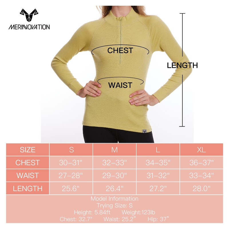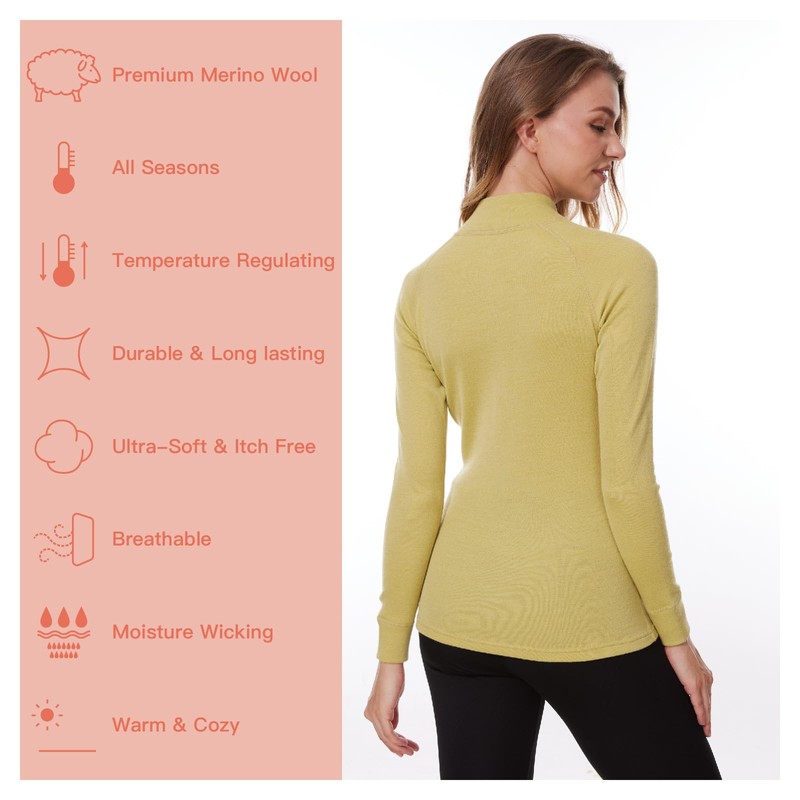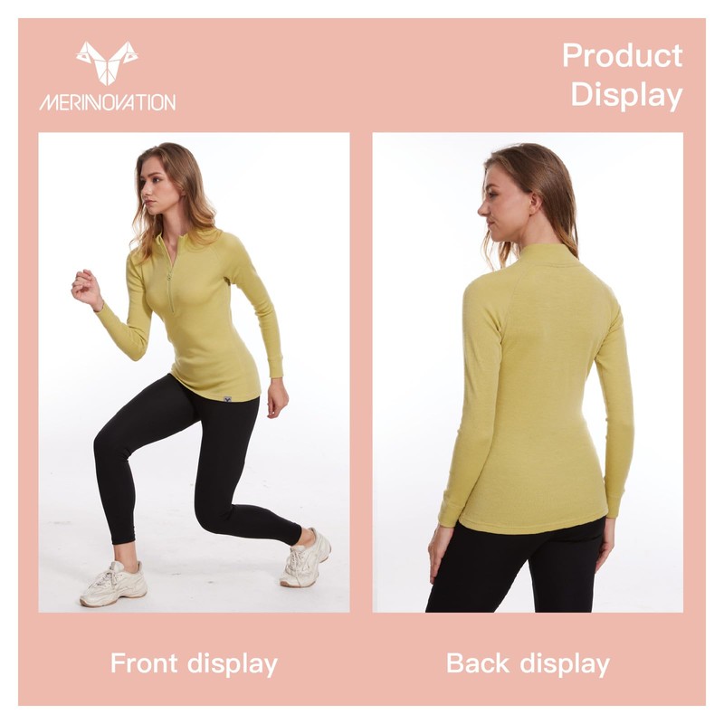 MERINNOVATION Merino Wool Base Layer for Womens Wool Half Zip Sweater Midweight 240gsm
