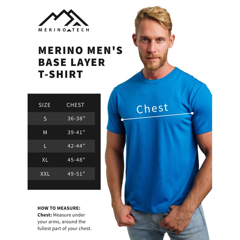 10 reasons why Merino.tech Merino Wool T-Shirts for Men are perfect for you. 1. AFFORDABLE - Replace your cotton tee with a merino wool undershirt without breaking the bank. 2. FOUR SEASONS COMFORT - This ultralight men's tee regulates body temperature to keep you comfortable all year round. 3. PERFECT FOR TRAVEL - Men's merino wool vest is ideal for multi-day wear without odor and comfort in all climates. Lightweight and naturally wrinkle resistant thermal t-shirt. 4. EASY CARE This wool t-shirt is machine washable and tumble dry. Hand wash and air dry flat for longer life. 5. LIFETIME WARRANTY - All Merino.tech products are covered by our lifetime warranty and this special men's merino wool shirt is no exception. 6. GREAT FOR EVERYDAY USE - Enjoy the comfort and performance of a men's wool tee every day - not just trail days. 7. GREAT FOR LAYERING The men's merino tee is custom made for layering without adding bulk. 8 EU: Itch Free The ultra-soft 100% merino t-shirt for men provides all-day comfort and no itching. 9. UPF 50+ PROTECTION Merino wool clothing blocks harmful sun rays. 10 EU: Ideal for any occasion - Suitable for trail, gym, hunting, fishing, skiing, office or night out. Order your merino wool tees now and say goodbye to smelly clothes