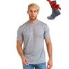Merino Wool Men's T-Shirt - 100% Organic Merino Wool Undershirt Light Base Layer + Hiking Wool Socks, Grey (grey blend)