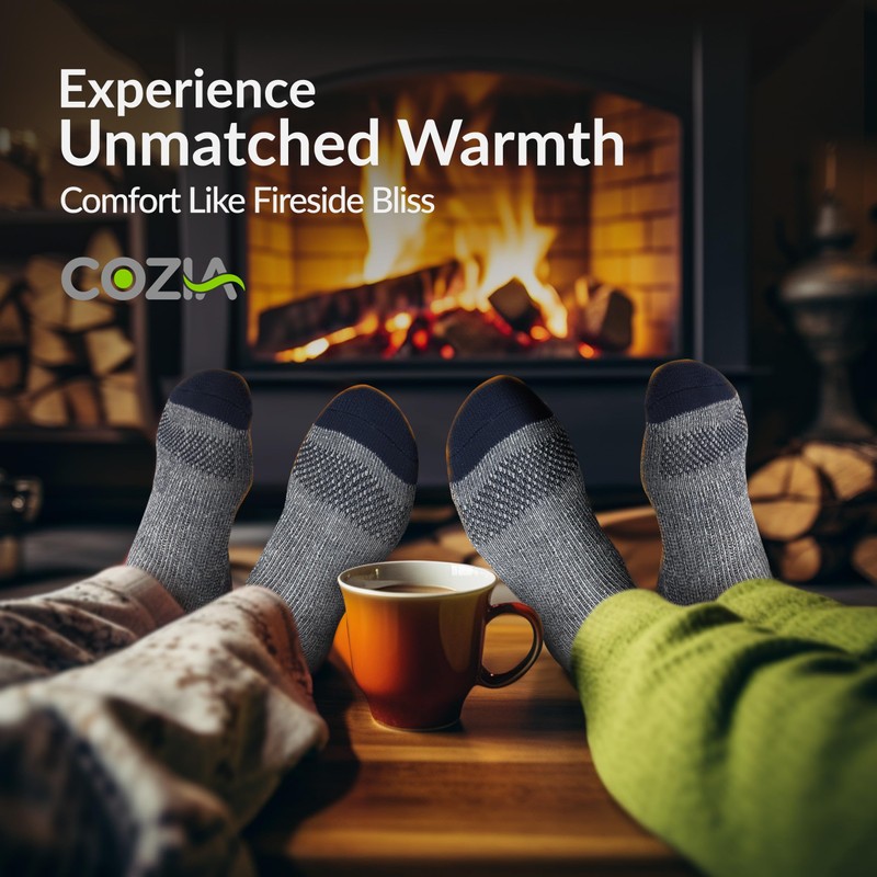 - WINTER SOCKS FOR FREEZING FEET – Keep your feet from freezing, protect them from the biting cold winter chill, and enjoy superior comfort with Cozia Thermal Socks for men and women. Our wool socks (mens) have a soft brushed fuzzy inner that provides you with a comfortable fit, gives enhanced cushioning which makes you feel like stepping on a cloud, and helps always keep your feet protected from adverse weather conditions.