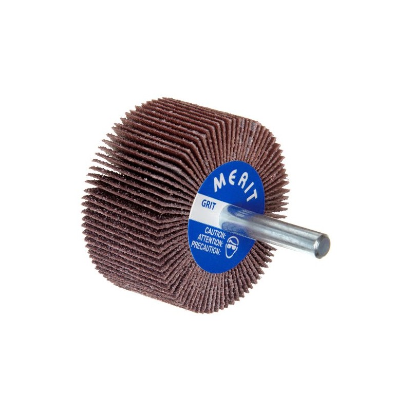 Merit High Performance Mandrel-Mounted Mini Grind-O-Flex Abrasive Flap Wheel, Round Shank, Ceramic Aluminum Oxide, 2" Dia., 1" Face Width, Grit 180, 25000 Max RPM (Pack of 10)