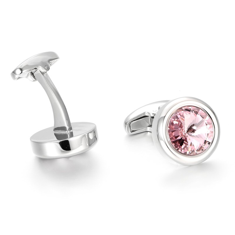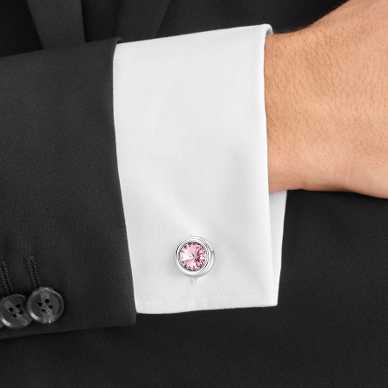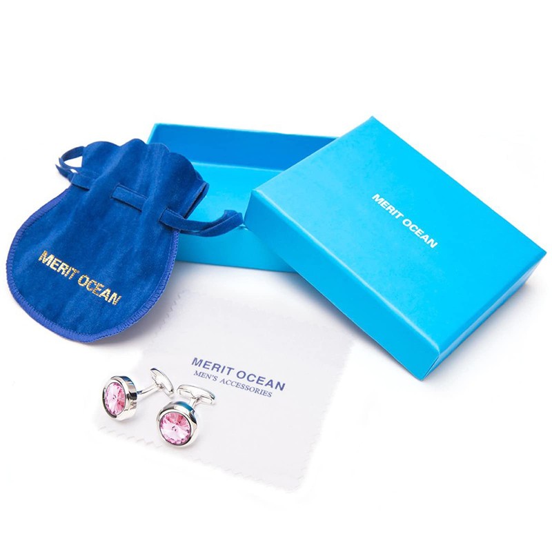 Merit Ocean Manschettenknöpfe für Herren, Eleganten Stil Manschette Link Super glänzend Rosa Kristall Circular Cufflinks Hochzeit mit Geschenkbox für Männer, Trauzeugen