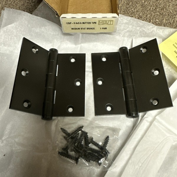 Merit Pair Merit 125P 3.5x3.5 Hinge Button Tip Medium Stat Bronze Hinges Bra...