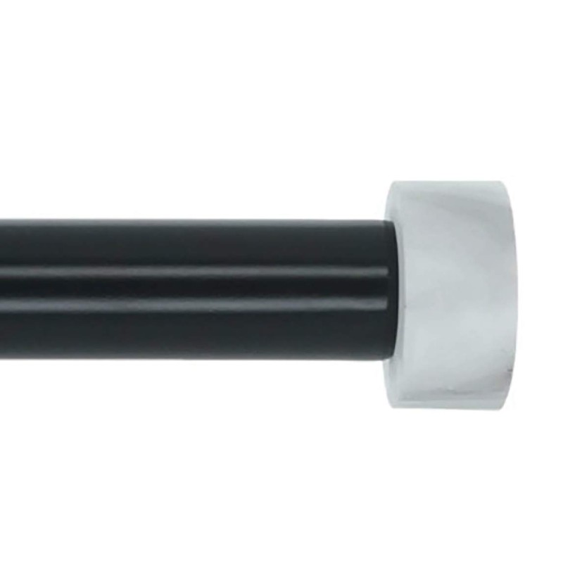 Meriville 1-Inch Diameter Single Window Treatment Curtain Rod, Vico White Marble End Cap Finial, 48-inch to 84-inch Adjustable, Black