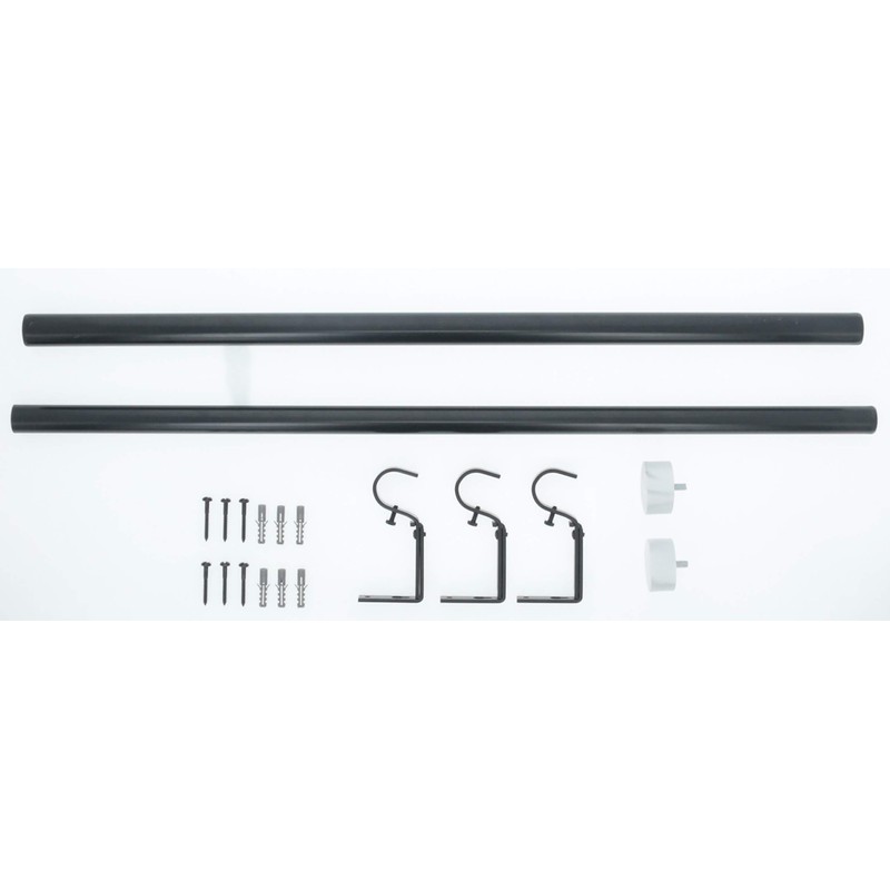 - EXTENDABLE: Designed to fit a range of window sizes. Come in three sizes: 28" - 48", 48" - 84" and 84" - 120". Two adjustable brackets included in 28"-48" rod set; three adjustable brackets included in 48"-84" and 84"-120" rod sets. Projection from wall adjusts from 4" to 5.5”.