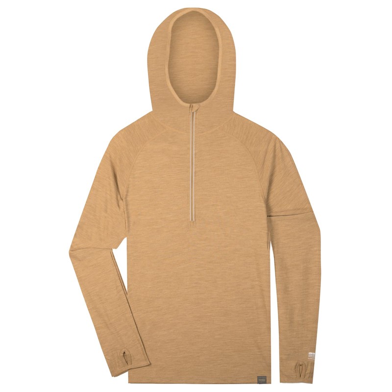 MERIWOOL Men’s Base Layer Hoodie Lightweight Merino Wool Long Sleeve Thermal Sand