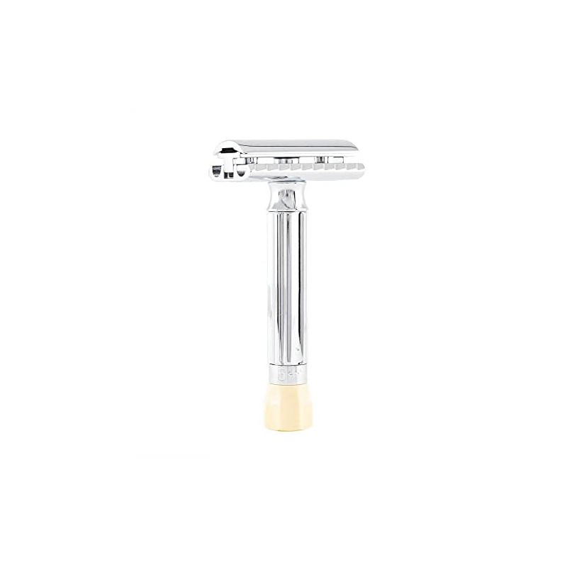 The Merkur Progress comes with an easy to use adjustable mechanism which allows you to change the blade angle and the amount of blade that is exposed for shaving - this way you get exactly the shave you're looking for, aggressive to mild. The Progress has five settings and five half settings, the higher the number, the more blade is exposed and the closer your shave will be. Dial the adjustment knob to number 1 or 2 for a mild shave, 4 or 5 for a close shave and set to number 3 for a medium-close shave.