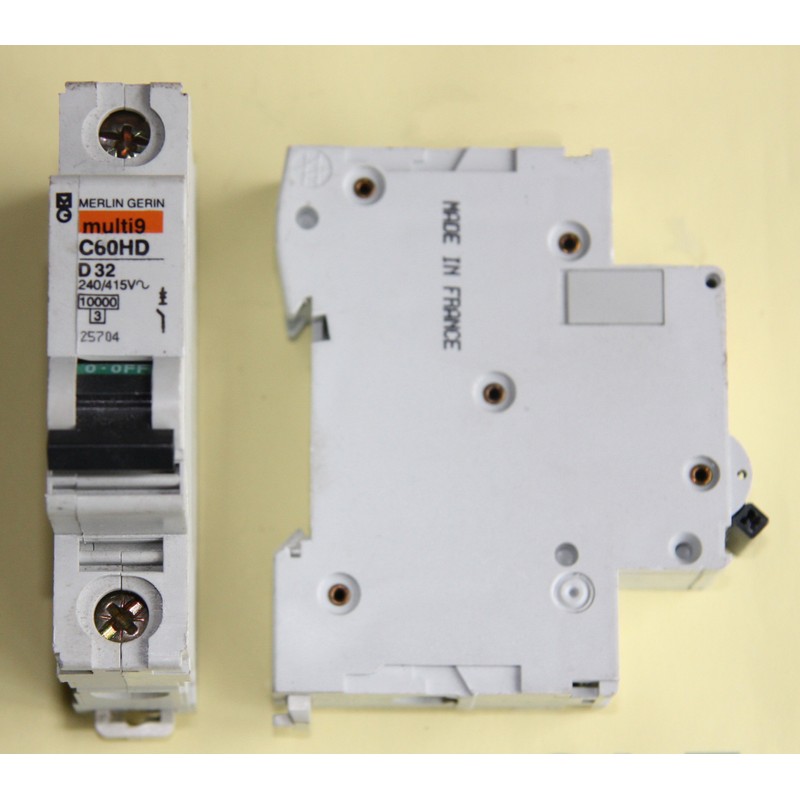 MERLIN GERIN 32 AMP TYPE D 10 kA MCB CIRCUIT BREAKER 240/415V C60HD 25704 MULTI9 BS EN 60898