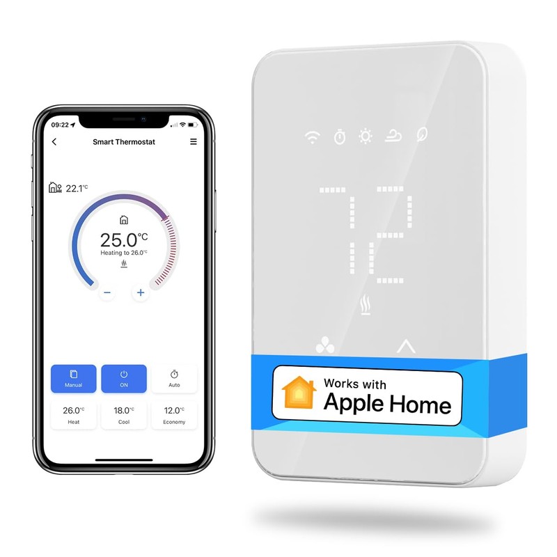 - High Accuracy: This programmable Wi-Fi thermostat ensures precise temperature control with ยฑ1โ accuracy. Adjust the temperature from 41โ to 95โ to your comfort. The sleek, pure white LCD display integrates seamlessly into your wall for a clean aesthetic