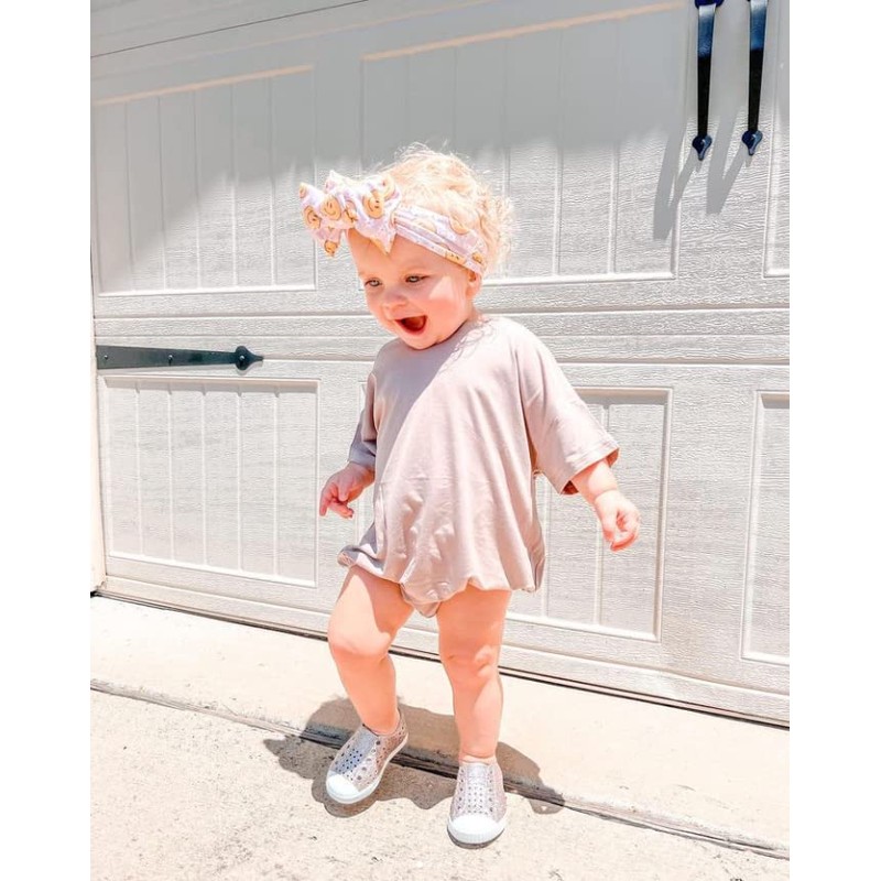 PACKAGE: 1 x Baby boy girl summer clothes basic solid short sleeve oversized t-shirt bubble romper bodysuit shirts tops neutral baby clothesFBA