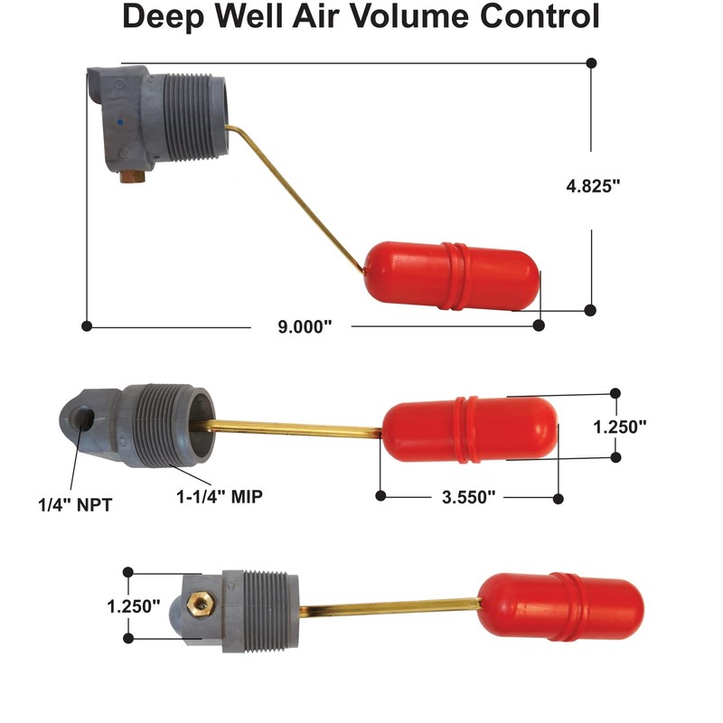 - Maintains balance of air volume in galvanized water tanks when using deep well pumps