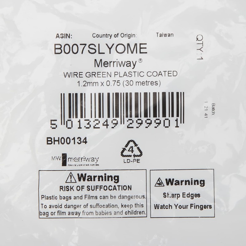 Merriway® BH00134 Plastic Coated Garden Wire, 1.2 mm x 0.75 (30 meters) - Green