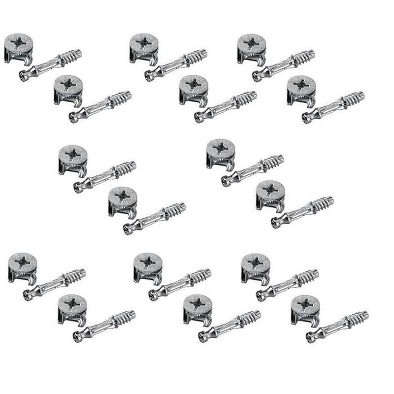 Merriway BH06259 (20 Pcs) Flat Pack Furniture Cabinet Fixing Screw Locking Cam Bolt Nuts (15mm x 12mm) and Dowels (M6 x 45mm), Bright Zinc Plated - Pack of 10 Each Piece