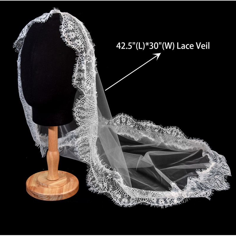 Merroyal Girls Tulle Lace Edge Mantilla First Communion Veil for Church Ceremony,White,43 Inch