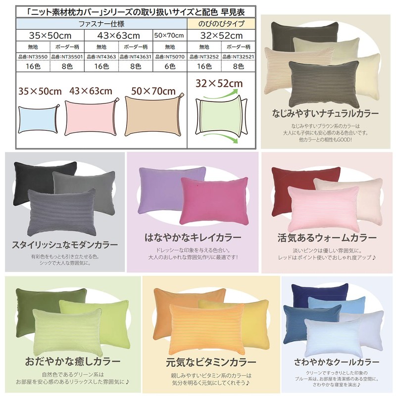 Merry Night NT4363-17 Pillow Cover, Solid Color, Orange, Approx. 16.9 x 24.8 inches (43 x 63 cm), Zipper, Easy to Put Pillow, 100% Cotton, Knit Material, Attached, Washable, All Seasons