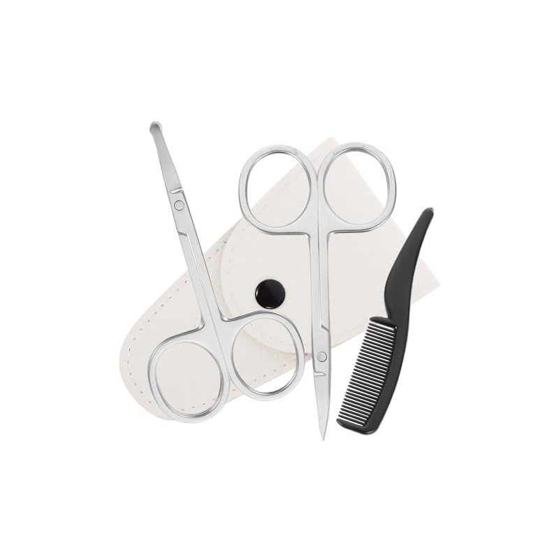 MERRYHAPY 4pcs Mustache Scissor and Comb Mini Kit Beard and Mustache Scissors Set Brush Comb Stainless Trimming Scissors for Men Nose Hair Trimmer Barber Shop Grooming Kit