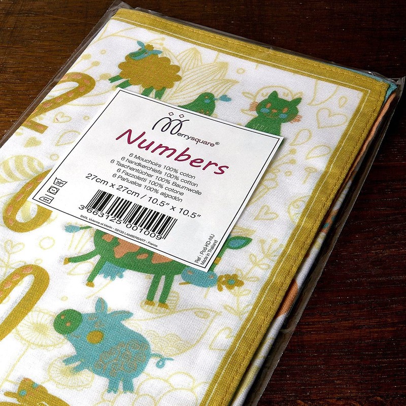 merrysquare - Children's Handkerchiefs - 100% Cotton - Approx. 26 cm - 6 Pieces, Numbers