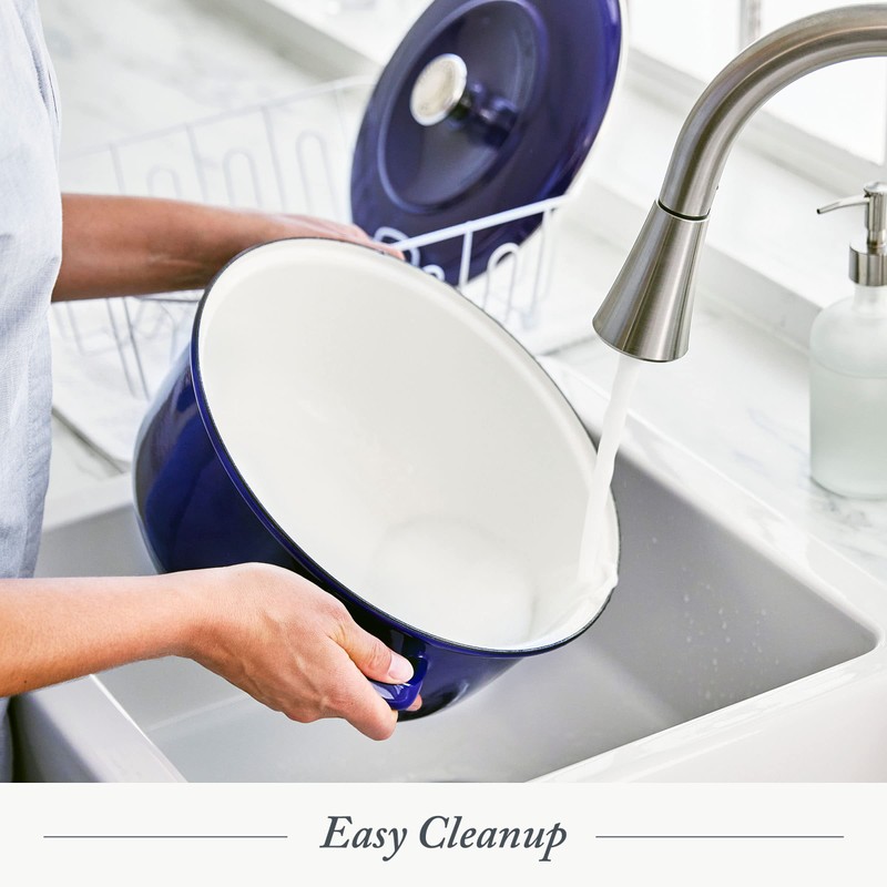 With the 1873 Dutch Oven, you’re in total control. Crafted from our unique German enameled iron, this Dutch oven is 30% lighter, thinner, and less brittle than cast iron. Our German enameled iron heats faster and more evenly than cast iron, which lets you dial in the perfect temperature for any meal. The 1873 Dutch oven is finished with a smooth GlazeGuard surface, which is fused directly to the body and creates a bond that’s more chip-resistant than enameled cast iron. Oven safe up to 600°F. Hand wash only.