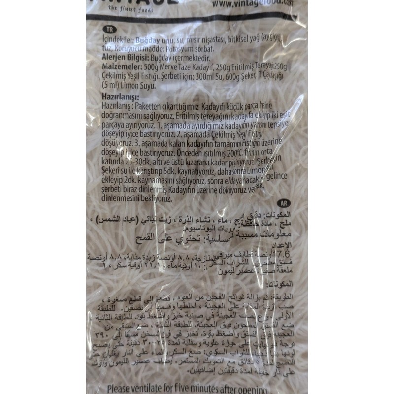 Merve Kataifi Dough - Shredded Fillo (Phyllo) Kataifi Fresh kadayıf dubai chocolate katafi dessert 500g