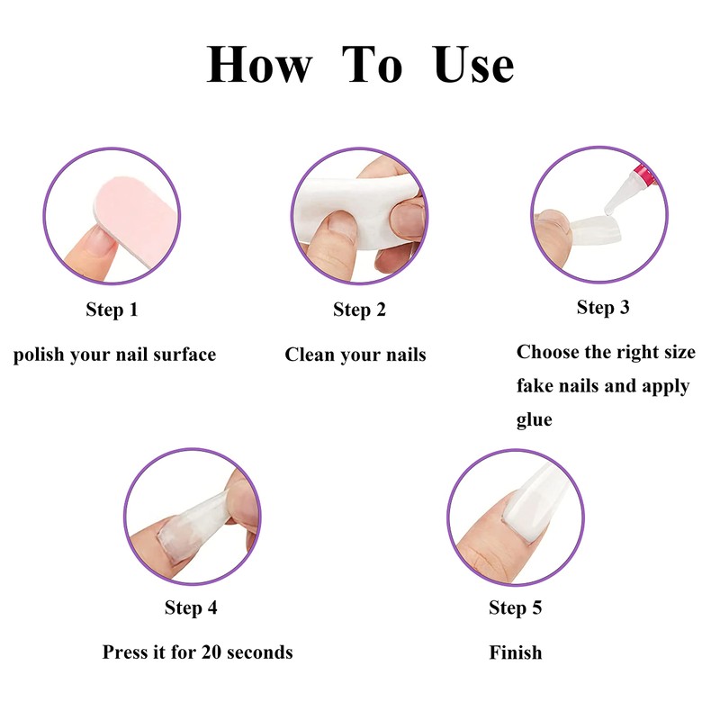 - Easy to Use: Square press on nails just choose a right size of the nail, polish the nail bed, apply glue on nails and press it for about 15 seconds. You can get a new nail by yourself without wasting time and more money at the nail salon