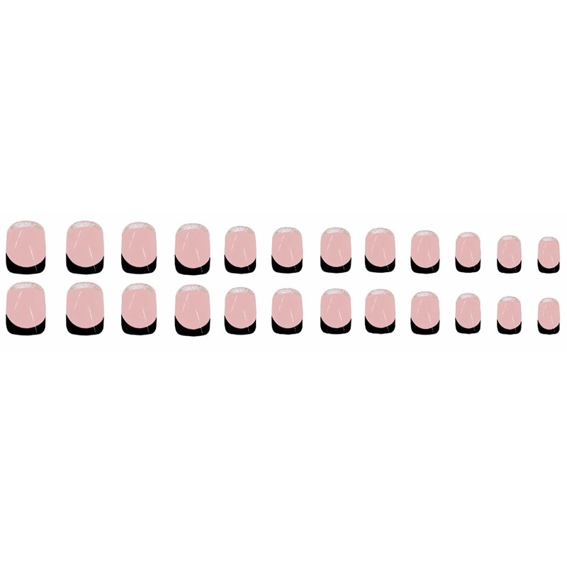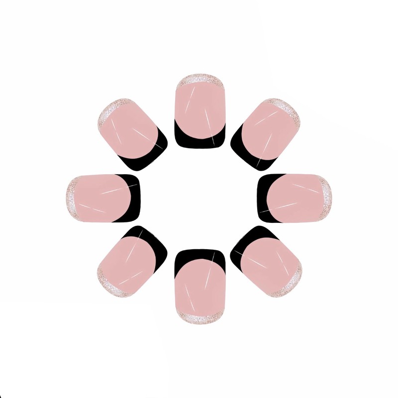 MERVF Square Press on Nails Short Fake Nails Black French Tip Glue on Nails Press ons Glitter French Squoval Acrylic Nails with Design Glossy 24pcs