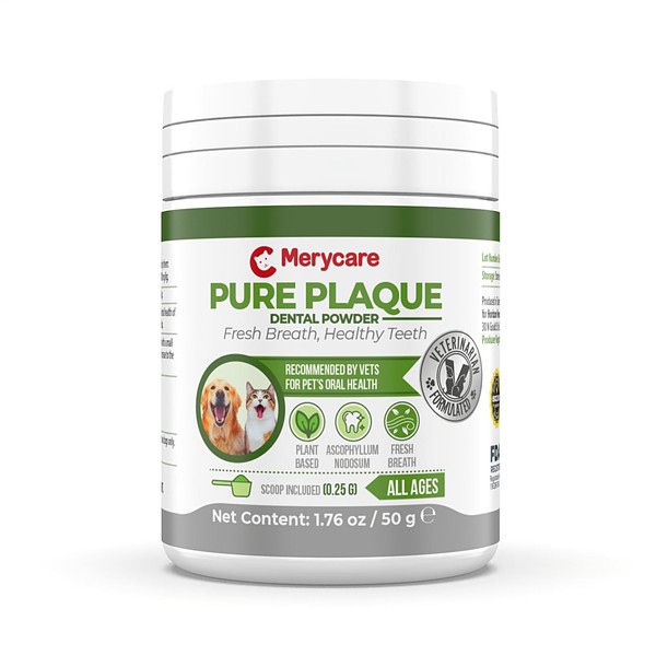 - 🐾 Veterinary-Recommended Dental Care – Merycare Pure Plaque Off powder helps reduce plaque and tartar buildup naturally when used daily. Supports gum health and fresher breath without brushing.