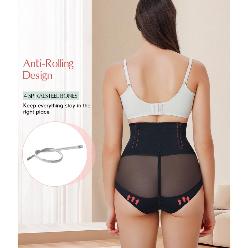 - BREATHABLE & SOFT MESH SHAPEWEAR: MERYOSZ tummy control panties are made of double layer top-grade nylon and spandex. Mesh shapewear panties are breathable and comfortable, suitable for all seasons, especially for hot summer weather without sweating all day. This butt lifter underwear is super smooth, stretches to move with your body, very comfortable to wear all day. This girdle for women tummy control give you firm control and makes your shape flawless.