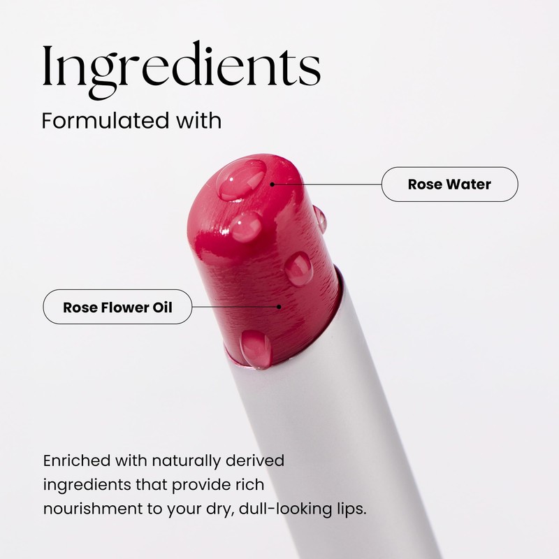 - NATURALLY EFFECTIVE INGREDIENTS: Formoulated with Rose water and Rose Flower Oil with extra-finely milled prigments, this natural lip balm replenishes and locks in moisture for hours with longer lasting touch of color that goes on smooth.