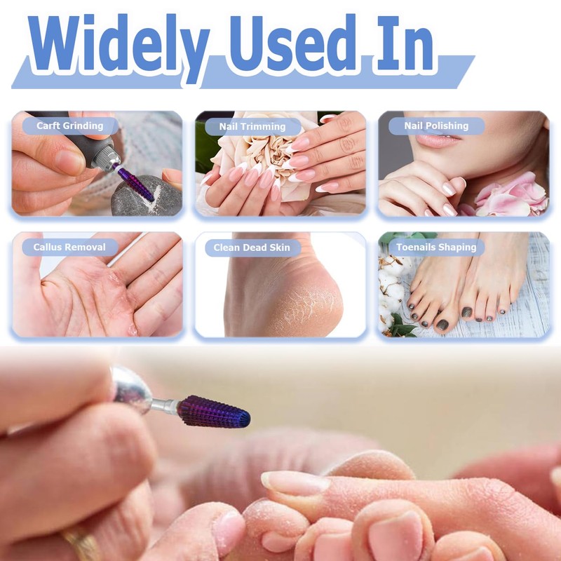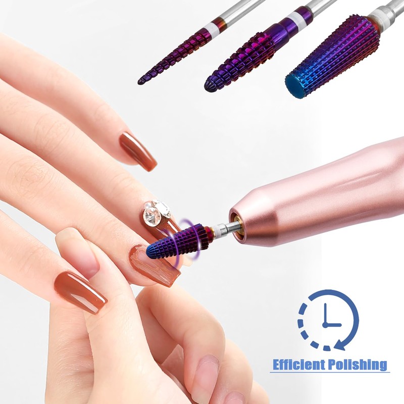 - 5-In-1 Nail Drill Bits - The roughness of the grinding head changes from fine to thick from top to bottom, can complete the function of multiple sizes, great for nail shaping, smoothing, and polishing