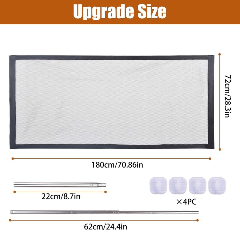 - Installation Instructions: Measuring 180 X 72cm, our mesh dog gate is easy to install, simply attach four hooks to either side of the door and use the four hooks on the mesh door to effectively hold the door in place.