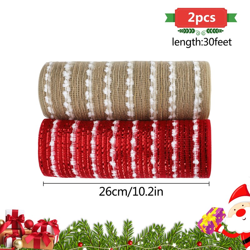 2 Rolls 10.2 Inch/26cm Christmas Decoration Poly Mesh Ribbon Christmas Metallic Foil Rolls for DIY Project Wreaths Swags and Decorating