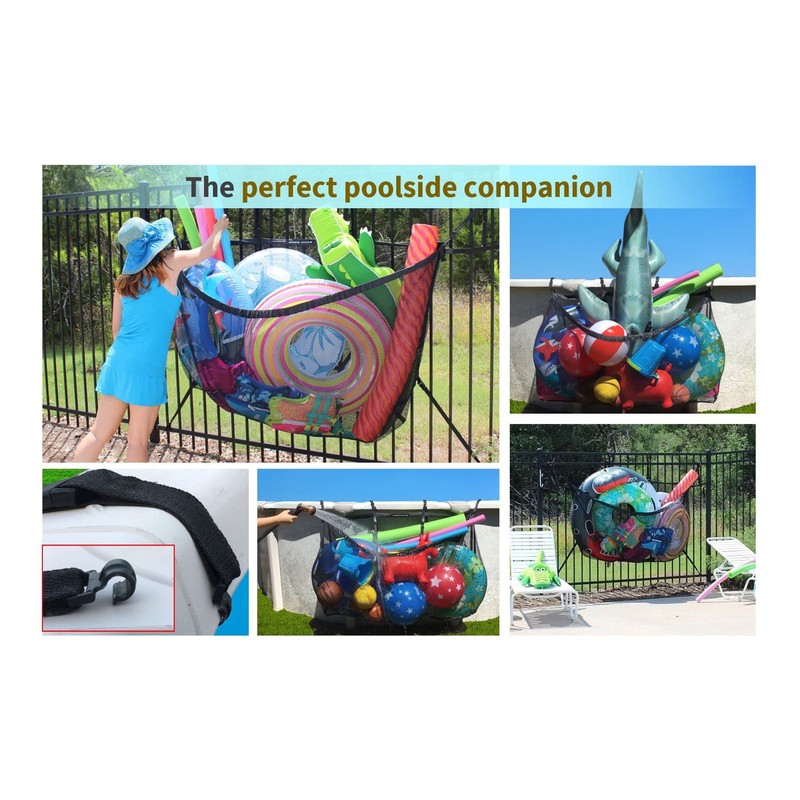 - CUSTOMIZABLE strap, buckle and integrated hook system allows easy mounting and removal on almost any fence, deck, gym or garage storage racks, and certain above-ground pool ledges