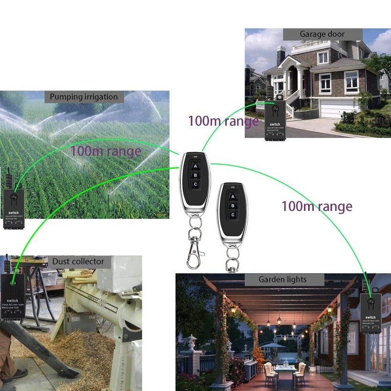 - WIDE APPLICATION:This mini long distance remote control switch is used in mud pumps, motors, lamps,fans,dust collect, insecticide machines, sprayers, car washers, bells, etc. various types of electrical equipment.