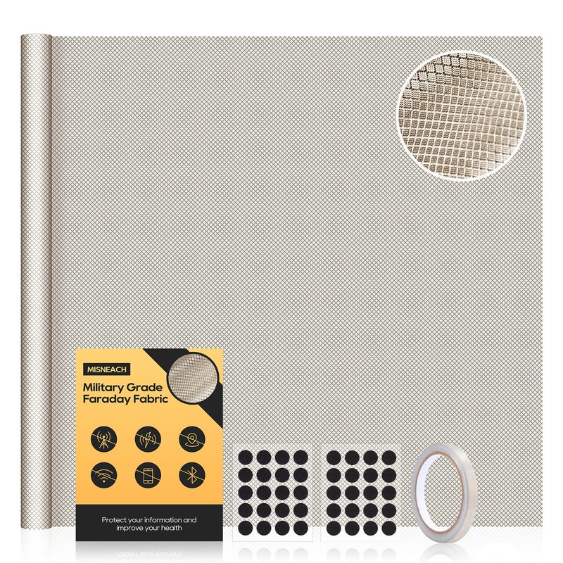 MESNEACH Faraday Fabric 118'' x 43'' Military Grade Signal Blocking Cloth, Conductive Material Shields Cover for Cell, RFID, EMP, EMF, GPS, WiFi, Bluetooth Proof Protection with Faraday Tape