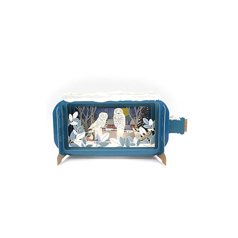 Message In A Bottle Snowy Barn Owls Pop Up Christmas Card By Alljoy Cards XMIB060