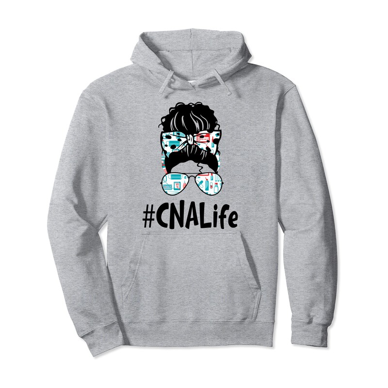 Messy Bun Cna Life Squad Funny Certified Nursing Assistant Pullover Hoodie